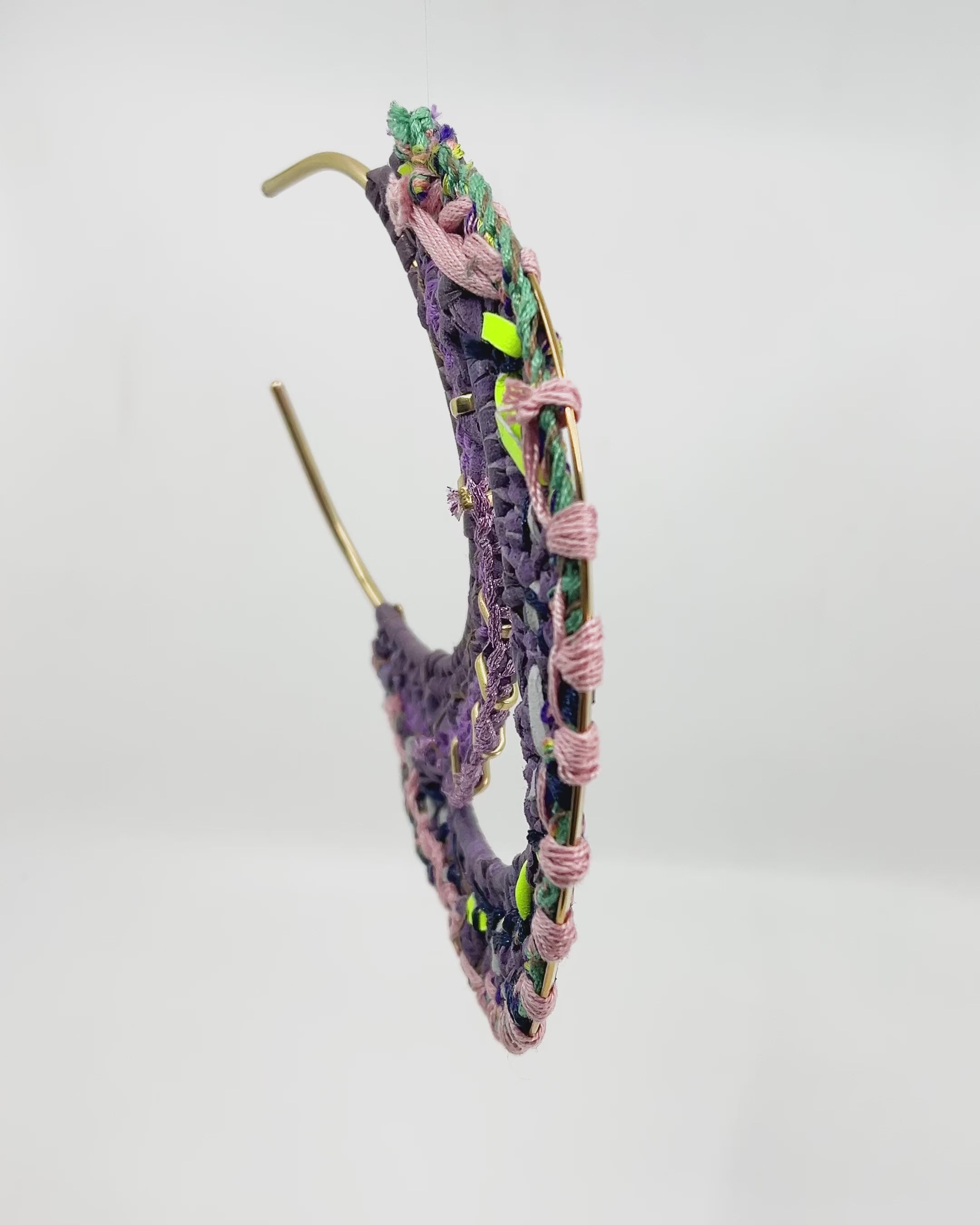 Introducing the **Signature Woven Leather Choker** by De Petra, a captivating blend of color, texture, and artistry. This handmade choker is crafted from luxurious Italian leather, featuring a vibrant palette of lavender and gold. Each piece of leather is intricately woven to create a stunning, sculptural design that sits gracefully around the neck.