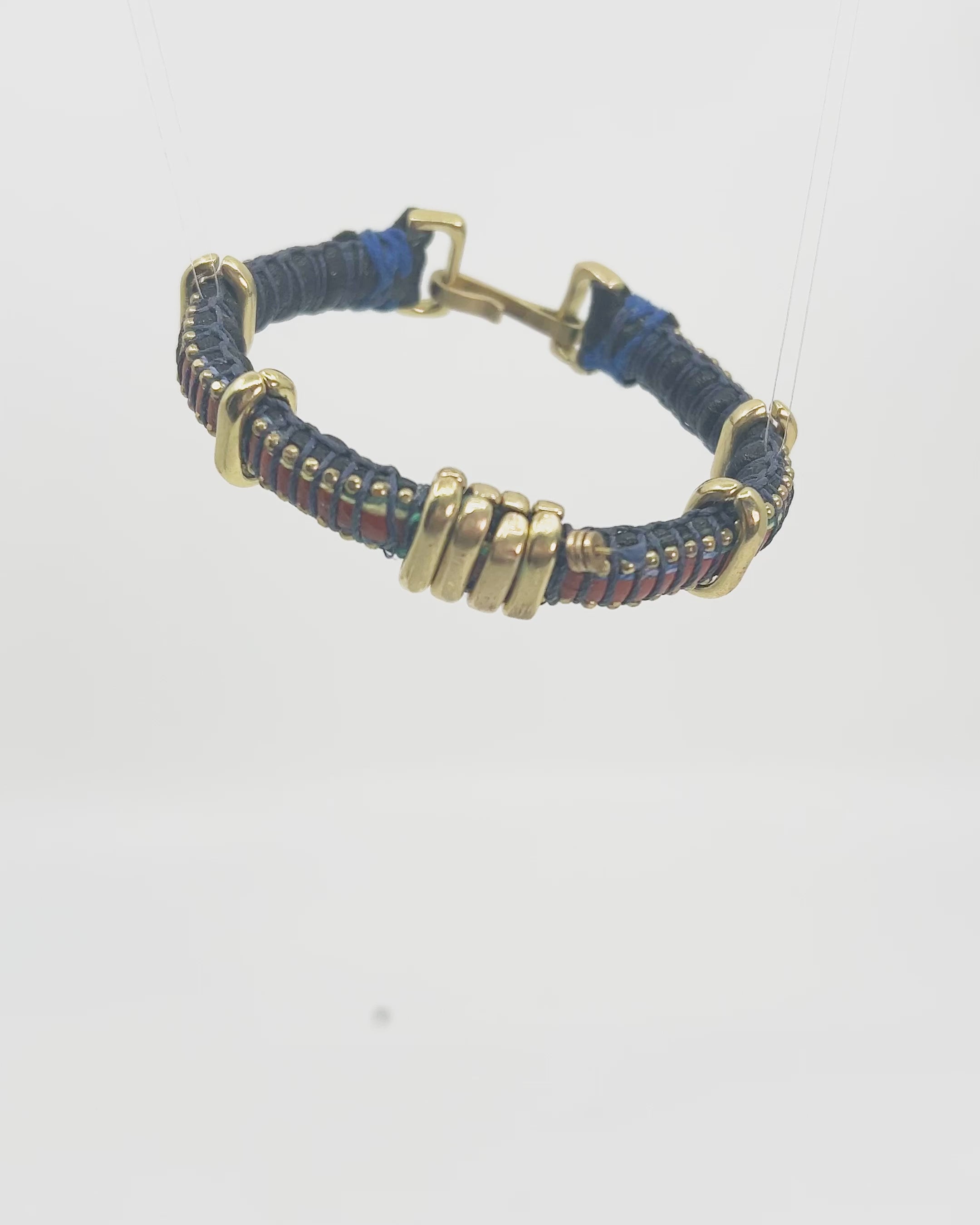 What sets the Sushi Leather Bracelet apart is the addition of woven French cotton threads, skillfully integrated into the design. These vibrant threads add a burst of color and texture, creating a unique, eye-catching contrast against the rich leather and gleaming chain.