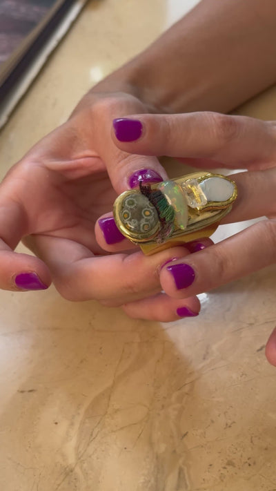 An unparalleled artistic creation designed to adorn your third finger with grace and symbolic meaning. This flexible, adjustable ring is more than jewelry—it's a wearable confluence of earth's treasures, perfectly sculpted for comfort and expressive style.